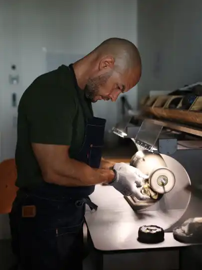 Hand-finishing a piece at Goossens’ atelier