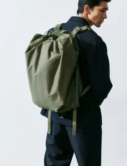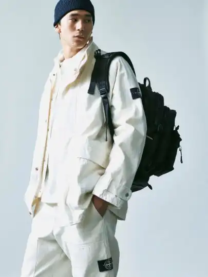 Jacket, mock-neck sweatshirt and trousers byStone Island Raw Beauty, beanie byAndersen-Andersen, backpack byHender Scheme