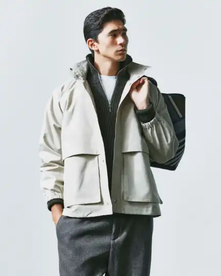 Jacket bySebago, sweatshirt byDrei BergefromA Young Hiker, T-shirt byGood On, trousers byArpenteur, key pack byPorter, bag byTen C