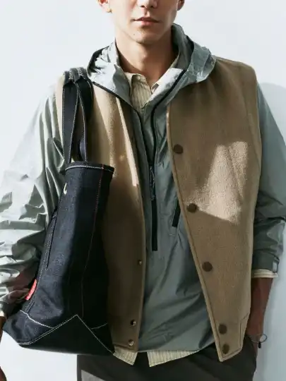 Gilet and shirt byYves Salomon, anorak bySedan All-PurposefromCouverture & The Garbstore, trousers byPolyploid, bag byRatsey & Lapthorn