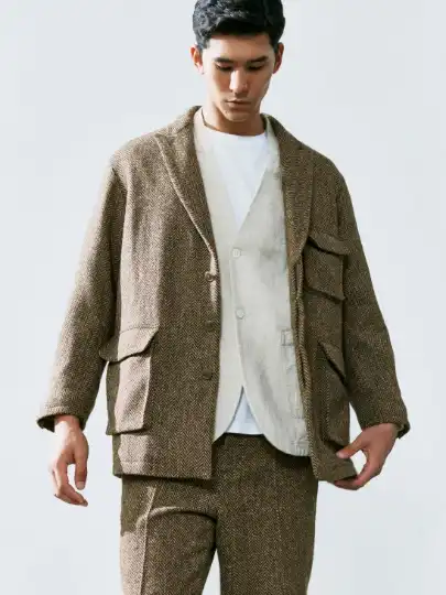Jacket byLaminar, gilet byArpenteur, shirt byGitman Vintage, trousers byHerno, glasses byJacques Marie Mage