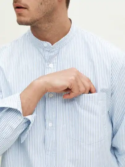 A versatile addition to any wardrobe, this popover strikes a balance between the casual comfort of a polo and the refined look of a dress shirt. Tailored from the same fabric as Monocle’s oxford button-down, it has a sleek collar and mother-of-pearl buttons.