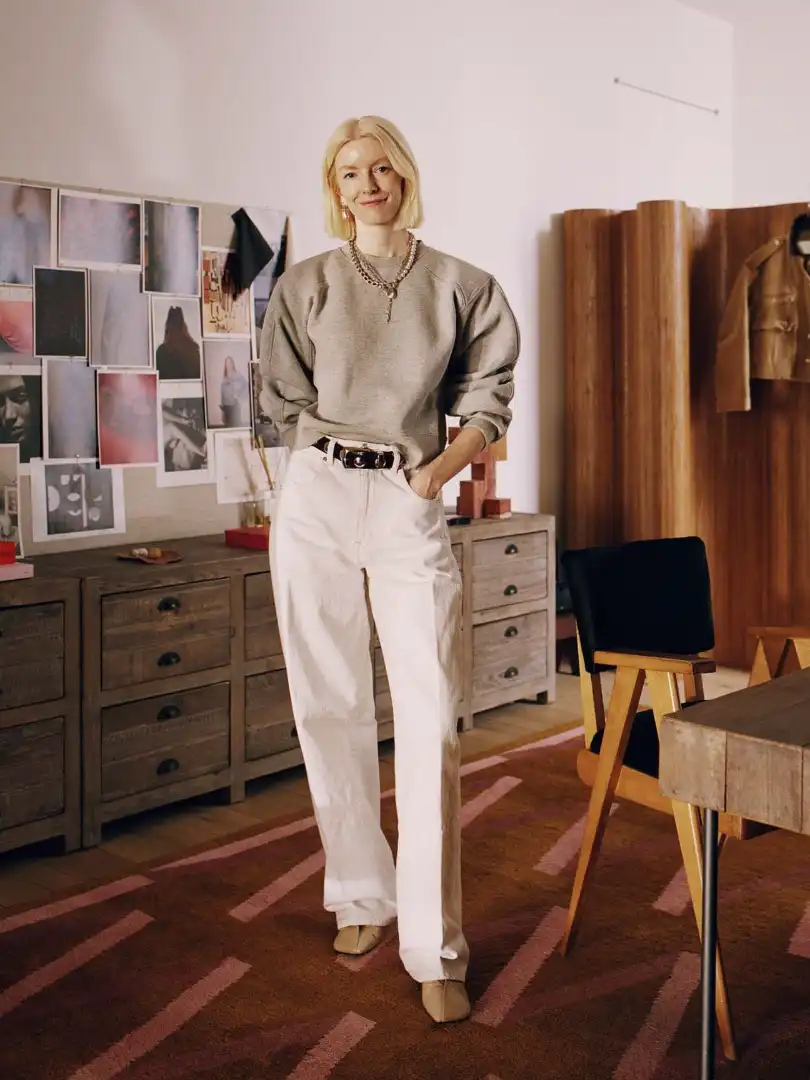The new generation of designers are following in his footsteps. Jac Cameron for instance, a former designer at labels such as Calvin Klein and Madewell, launched her label Rùadh last year with the ambition of offering the most considered, sustainably made denim in the luxury market. Operating out of her chic Tribeca loft, filled with mid-century furniture and romantic mood boards of her native Scotland, she has been working on perfecting her label’s signature silhouettes (straight leg trousers with subtle pleats running down the middle and curved jackets featuring recycled hardware) and producing them in small batches in specialist factories in Los Angeles. It’s a far cry from the previous generation of American denim brands, which outsourced manufacturing to China and targeted the mass market.