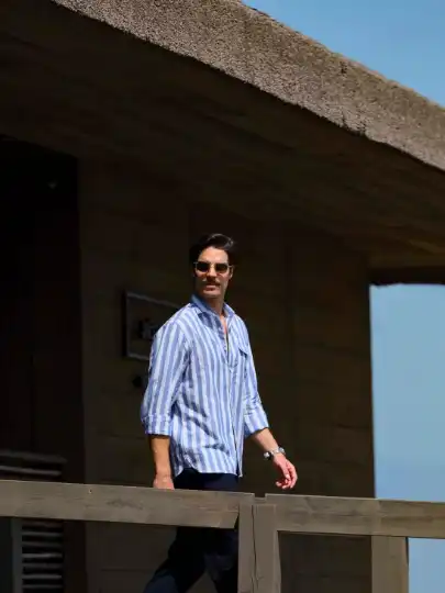 Shirt and trousers byHackett, sunglasses byMontblanc, Montblanc 1858 Iced Sea Automatic Date watch byMontblanc