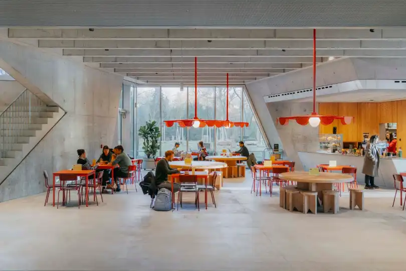 “We always said that this is a building without a model,” says Ulrike Dix, a partner at AFF, the architecture practice behind the design. Indeed, there are similar journalists’ houses elsewhere but none have the size or scope of Publix. To figure out the building’s needs, the team set up a panel with its future tenants to steer the planning process. But the board made few design demands, mostly stressing the need for secure computer systems and data storage. “Journalists are used to working anywhere,” says Dix. “They’re not used to thinking of their needs in terms of architecture.” Exner, who was previously editor-in-chief atZeit Magazin, chimes in. “When we started a podcast [before the Publix outpost was built], we set up our first studio in an old server room,” she says, laughing.