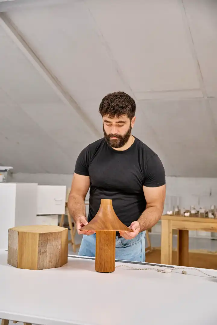 L’Hospitalet’s fragmented urban fabric consists of modern skyscrapers and warehouses, a medieval town centre and neighbourhoods with apartments built in the 1960s and 1970s. “I wanted a generous space to work in, which is hard to find in Barcelona,” says designer Jorge Suárez-Kilzi as he welcomes Monocle into his studio on the top floor of Edifici Freixas. The 1960s-era six-storey building was built for heavy industry and craftspeople. While it’s still home to a few carpenters and glassworkers, it now houses a growing number of artists. “Moving here came out of the necessity of finding an alternative to Poblenou,” says Suárez-Kilzi, referencing the trendy former industrial neighbourhood in Barcelona. That area is now “more established,” he says, as start-ups, technology companies and luxury hotels have moved in.