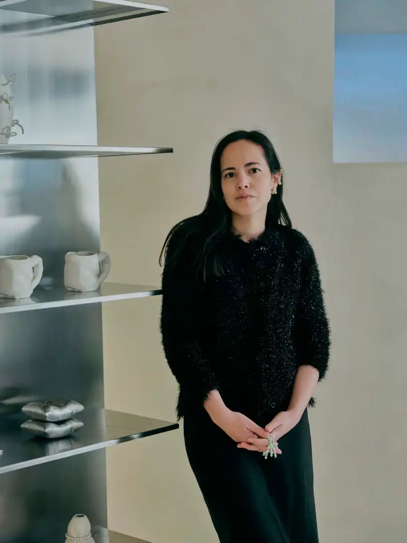 Anna Jewsbury’s London-based studio Completedworks offers up a world of colour, charm and inspired objects. These range from sculptural earrings to molten-looking glass jugs and puffy vases cinched with pearl necklaces. In her work, Jewsbury places a premium on the idea as opposed to the medium. Perhaps it’s that restless, searching energy that encouraged her to move the brand, which started with jewellery in 2013 before later taking on homeware and leather handbags, into the world of furniture, too.