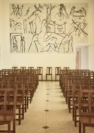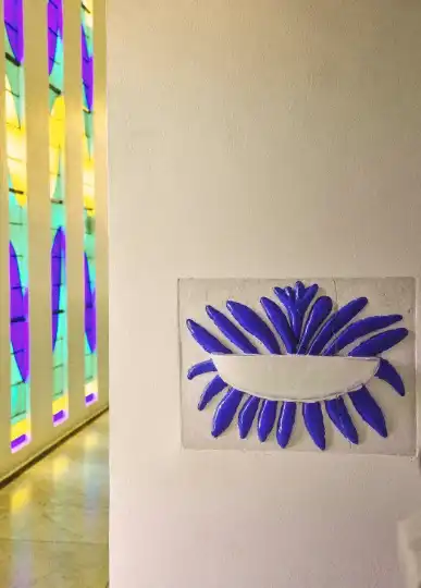 Regarded as Matisse’s architecturalchef-d’oeuvre, it was the first time that the artist had created a monument in its totality. “Matisse saw the relationship between the objects as little worlds that fit together,” says Teste de Sagey. From the altar and crucifix to the ceramic murals featuring the figures of the Madonna and Saint Dominique, as well as the colourful vestments of priests, Matisse dedicated his final years to this deeply personal and reflective work. Under the guidance of French architect Auguste Perret, a master of reinforced concrete, Matisse designed the L-shaped chapel’s two narrow naves in modest proportions due to the steep terrain on which the chapel is perched. Just 15 metres long by six metres wide, the glory is in its artistic value rather than its size.