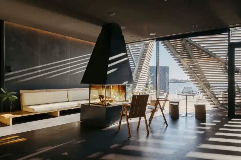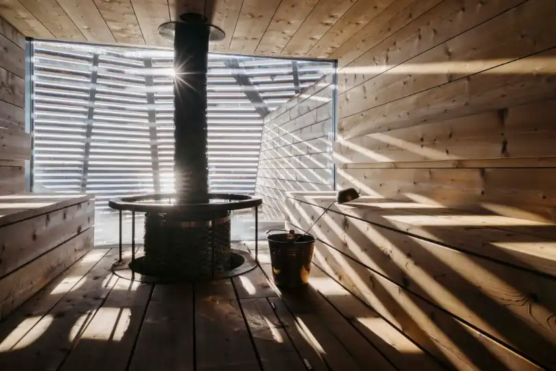 Opened in 2016, Löyly’s design plays a key role in setting up the sauna as a sanctuary. Shielded from the outside world by a pinewood shell, the rooms are kept dim, even in summer. Like the best saunas, it feels spartan, with the focus centred on the heat –löylyis a Finnish word describing hot steam evaporating from sauna stones. The mysterious ambience is accentuated by the use of wood within.