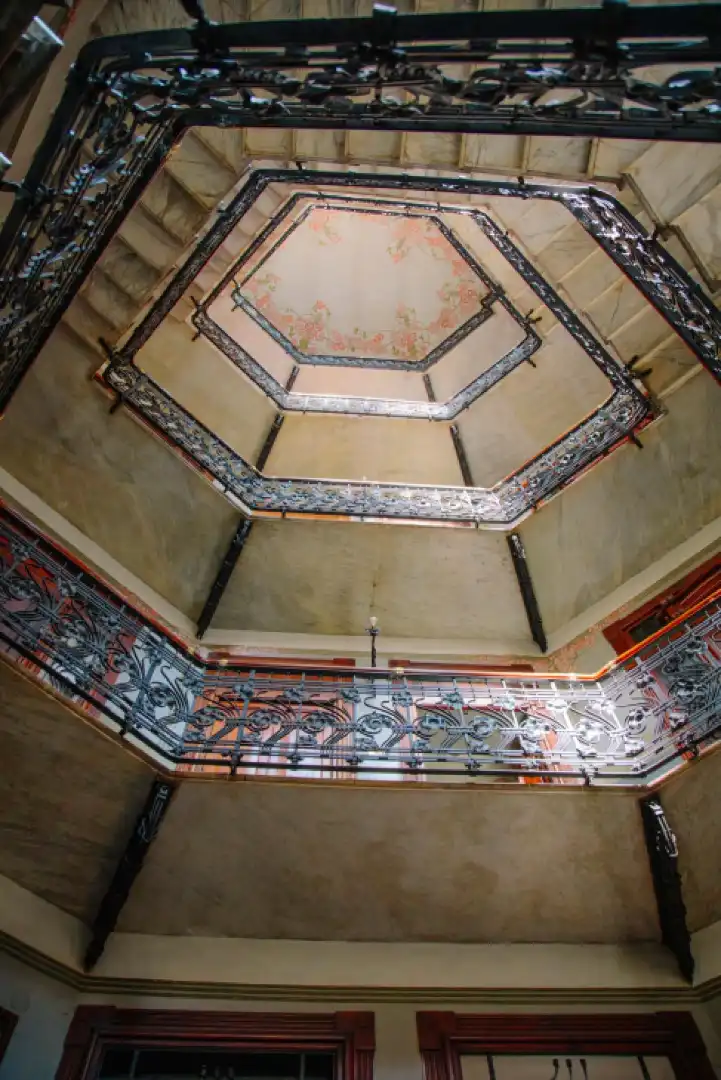Candiani then takes us to nearby Casa Campanini, which is on a par with Castiglioni and is named after the architect who designed it. Again, it’s all about the details, from the marble powder added to the concrete columns to the floral staircase designs and the intricate entrance gate (another work probably by Mazzucotelli), which has a mechanised opening-and-closing system that would have been avant garde for the time. Thecasaalso has an example of one of the first Stigler lifts in Milan, complete with an art nouveau-style logo.