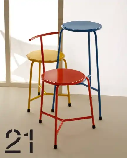 “I don’t think about products but rather what they can do to the spaces that they inhabit,” says Gonçalo Prudêncio, founder of Portuguese design firm Ghome. Case in point: Aço, which exudes playfulness through bold shapes and colours.