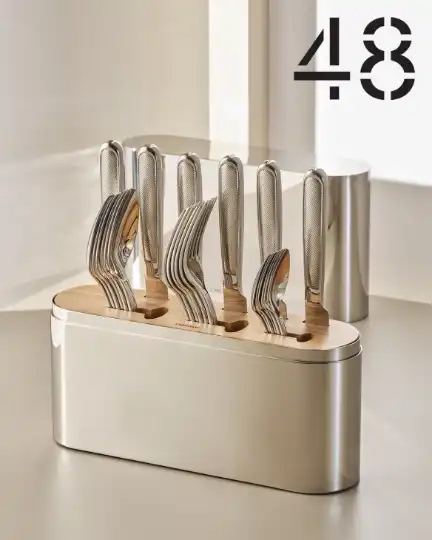 The Place de la Concorde in Paris is symbolic of French fraternity. So it’s a fitting source of inspiration for Christofle’s well-established Concorde silverware collections, designed for use at parties. Housed in a white-oak-and-steel case, the cutlery draws deeply from the brand’s heritage. Amilleraiespattern lining the utensils’ handles provides a contrast between gloss and matte finishes. These knives, forks and spoons are a pleasure to hold.