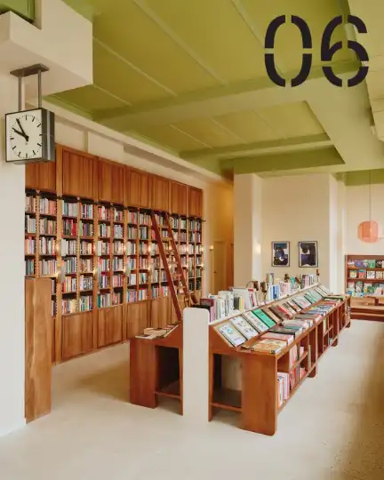 A new café and bookshop on the top floor of French fashion house Alaïa’s London flagship is a welcome development in the retail landscape. An aluminium table occupies the centre of the café, which serves flat whites and matcha lattes with pastries from London bakery Violet. The bookshop is curated by the team behind Claire de Rouen, a popular east London spot for titles on art, photography and fashion.
