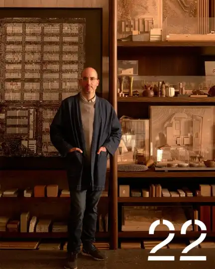 It’s appropriate that we’re meeting Manuel Cervantes, our residential architect of the year (though his practice encompasses much more), in his studio. “I live next door, so it’s an extension of my home,” says Cervantes. His residence and studio is filled with books, artwork and objects that “shape the way that we discuss projects”, says the architect. “It’s a space for thinking and connection, not just work. Sometimes it’s easier to communicate an idea with a painting or a material sample than through a drawing.”