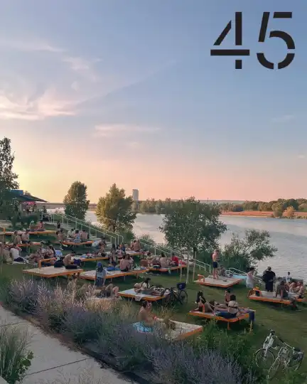 Vienna’s Danube Island is an artificial stretch of land created in the 1970s and 1980s as a flood protection measure. “When they built it, they didn’t have any idea of what else it should be,” says Mark Neuner, the founder of Viennese architecture firm Mostlikely. Last year the practice completed the first phase of its Pier 22 project on the island. Facing Vienna’s tallest building, the DC Tower 1, it’s the recreation space that the city has long needed, despite its strong tradition of bathing beaches and swimming pools.