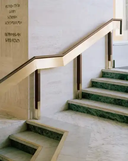 But the jewels in the building’s crown are its integrated artworks. The most famous of these is the 150 sq m stained-glass triptych “Total Liberation of Africa” by Ethiopian artist Afewerk Tekle. The dazzling work, which features scenes from the continent’s history, was made by Studio Atelier Thomas Vitraux in Valence, France. Architectus Conrad Gargett enlisted Emmanuel Thomas, the grandson of the original maker, to restore it.