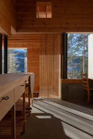 For Lenschow, designing thishyttemeant creating a new structure equipped with modern amenities, while preserving the traditional essence of an off-grid retreat by way of simple construction and a deep connection with nature. “What the modern country escape looks like is an ongoing conversation in Norway,” says the architect. “It’s not about going back in time; it’s about each individual’s interpretation of what it means to be immersed in nature. For some, this means having a cabin in a remote spot, only accessible by skis. For others, it’s simply about being surrounded by stillness. What ahyttemeans to you is very personal.”