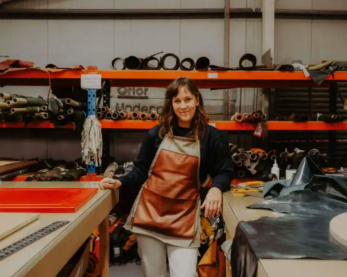 It’s here, among the industry, that Brian comes every day, more comfortable putting his hands to work than being asked to articulate his backstory. He’s busy upholstering a low-backed, chunky leather Shanog sofa – his original design from 1979, brought back into the collection in 2019, the year that the brand relaunched. “Dad was in here at 07.00, dying to finish that sofa,” says Katie.
